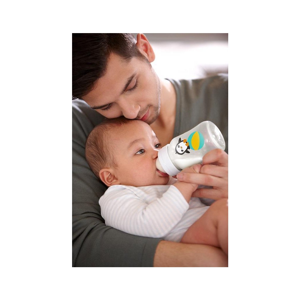 Tvar fľaštičky zaisťuje vysokú stabilitu a pohodlné držanie. Široké hrdlo uľahčuje plnenie fľaštičky aj jej čistenie. Prehľadná presná stupnica pomôže určiť, koľko vaše dieťa vypilo. Viečko tesne prilieha k cumlíku, takže pri premiešavaní stravy alebo cestovaní nedochádza k vylievaniu obsahu fľaštičky.