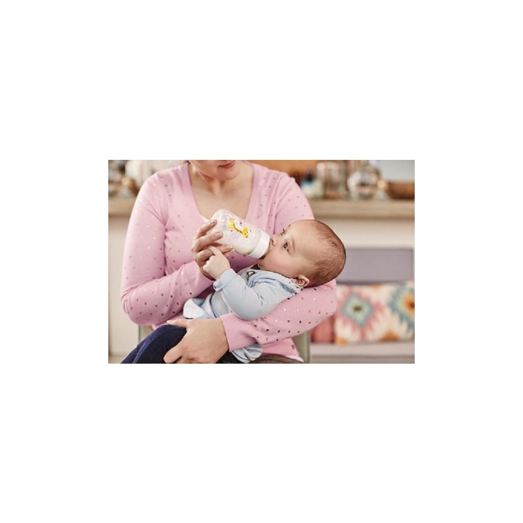 Tvar fľaštičky zaisťuje vysokú stabilitu a pohodlné držanie. Široké hrdlo uľahčuje plnenie fľaštičky aj jej čistenie. Prehľadná presná stupnica pomôže určiť, koľko vaše dieťa vypilo. Viečko tesne prilieha k cumlíku, takže pri premiešavaní stravy alebo cestovaní nedochádza k vylievaniu obsahu fľaštičky.