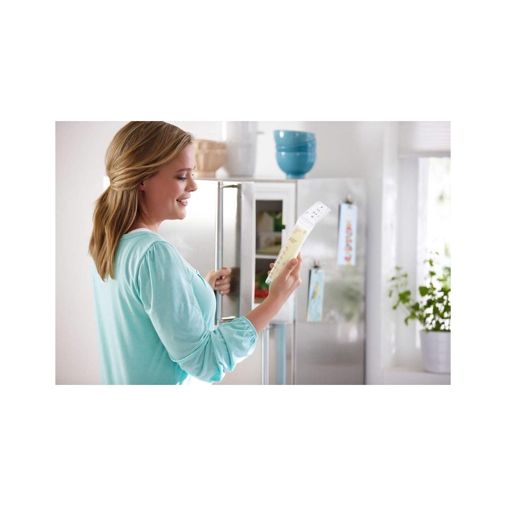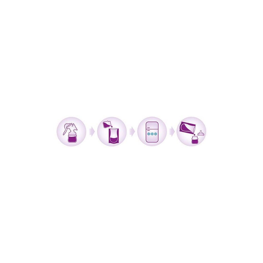 Sáčky majú posilnené lemy a systém dvojitého dna. Jedinečný systém pre uskladnenie vášho materského mlieka.