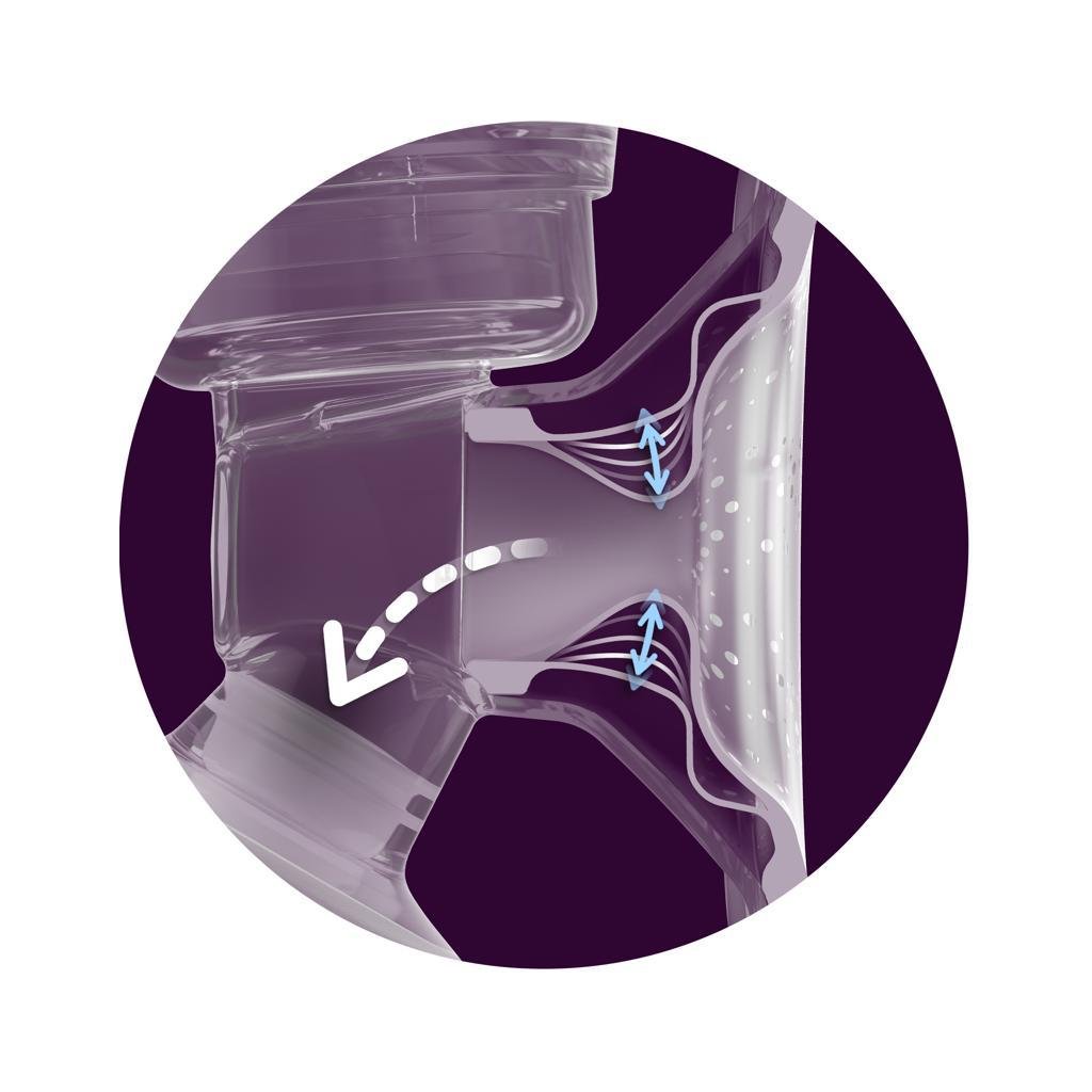 Inšpirované bábätkom, praktické pre mamičku. Technológia prirodzeného pohybu. Efektívne kombinuje vákuum a stimuláciu bradaviek pre rýchlejší tok mlieka. Inšpirované jedinečnou schopnosťou bábätka sať a masírovať bradavku, technológia prirodzeného pohybu prirodzene stimuluje tok mlieka.