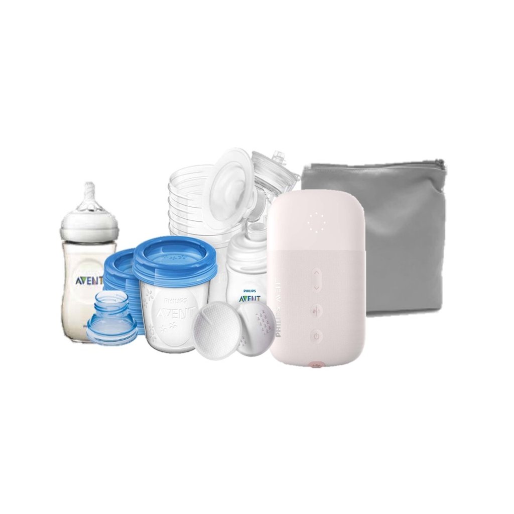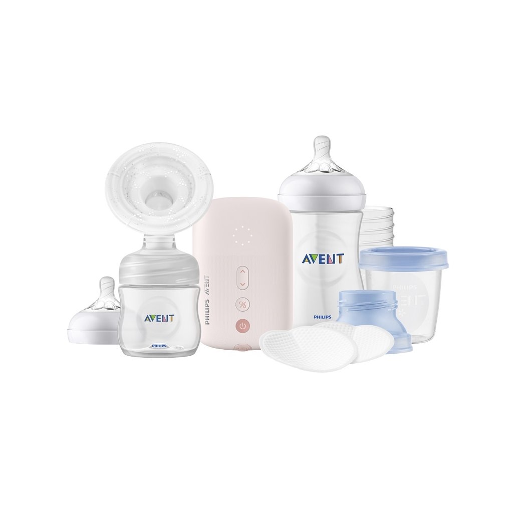Výhodné balenie elektrickej odsávačky materského mlieka. Sada obsahuje všetky výrobky, ktoré potrebujete na odsávanie, uskladnenie a kŕmenie materského mlieka.