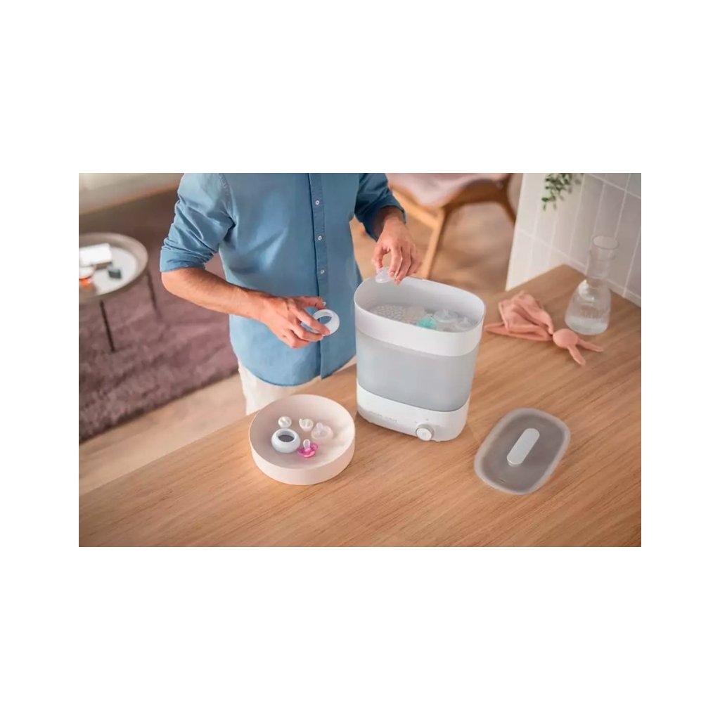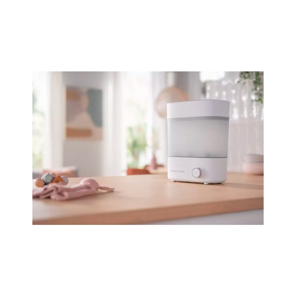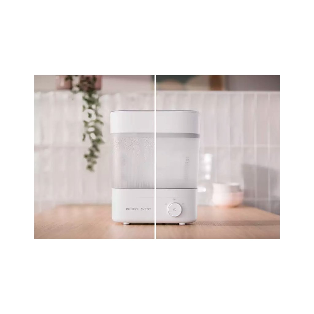 Vďaka prispôsobiteľnej veľkosti zaberie elektrický parný sterilizátor Philips AVENT v kuchyni minimálne množstvo priestoru a súčasne sa dokonale hodí pre predmety určené na sterilizáciu – či už je ich len zopár, alebo celá kopa.