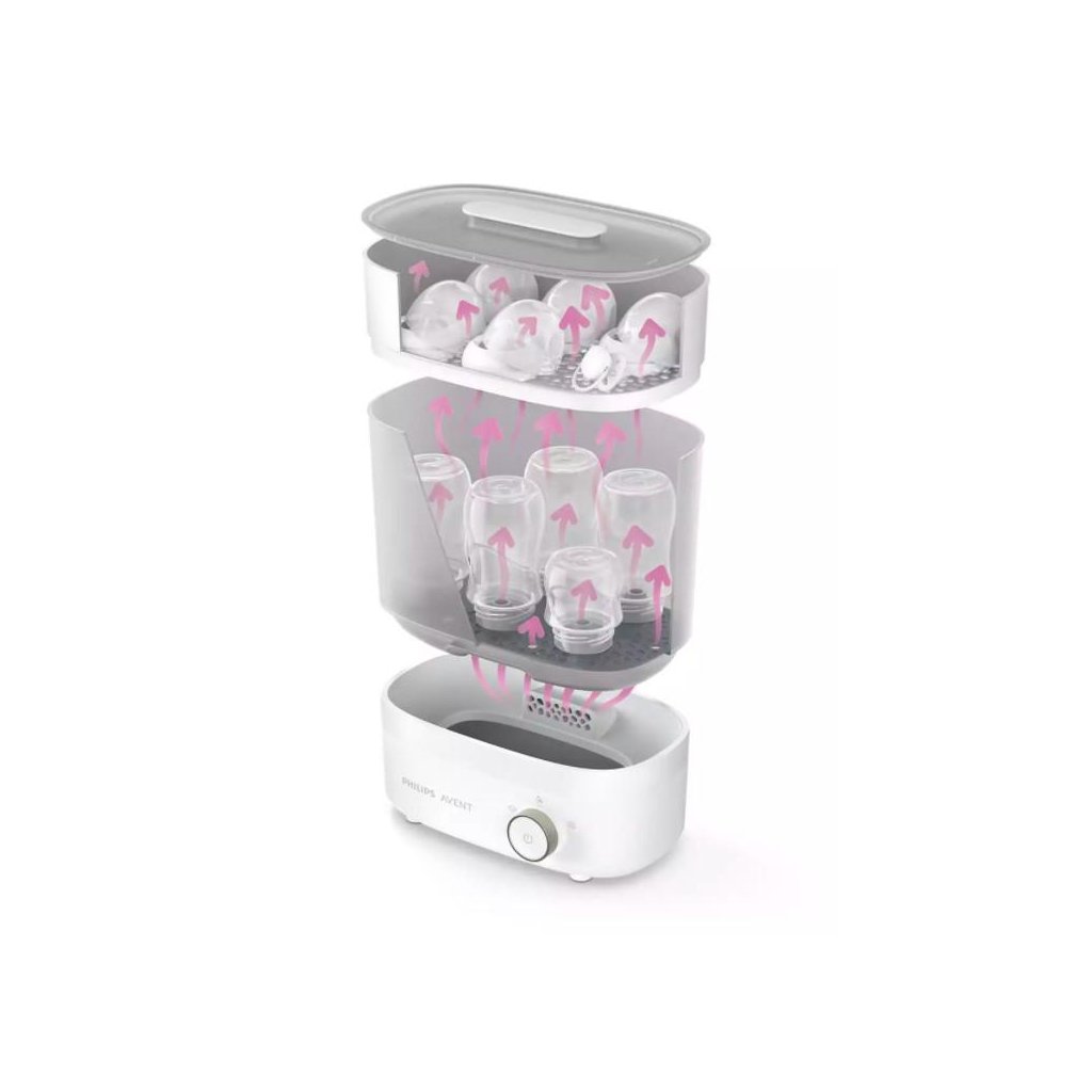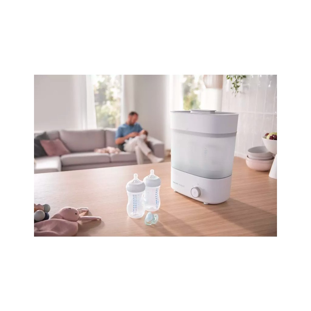 Príprava fliaš na ďalšie kŕmenie vášho dieťaťa trvá iba 40 minút. Po výkonnej parnej sterilizácii fľaše a príslušenstvo vysuší sústredeným prúdom filtrovaného vzduchu, takže sú pripravené na okamžité použitie.