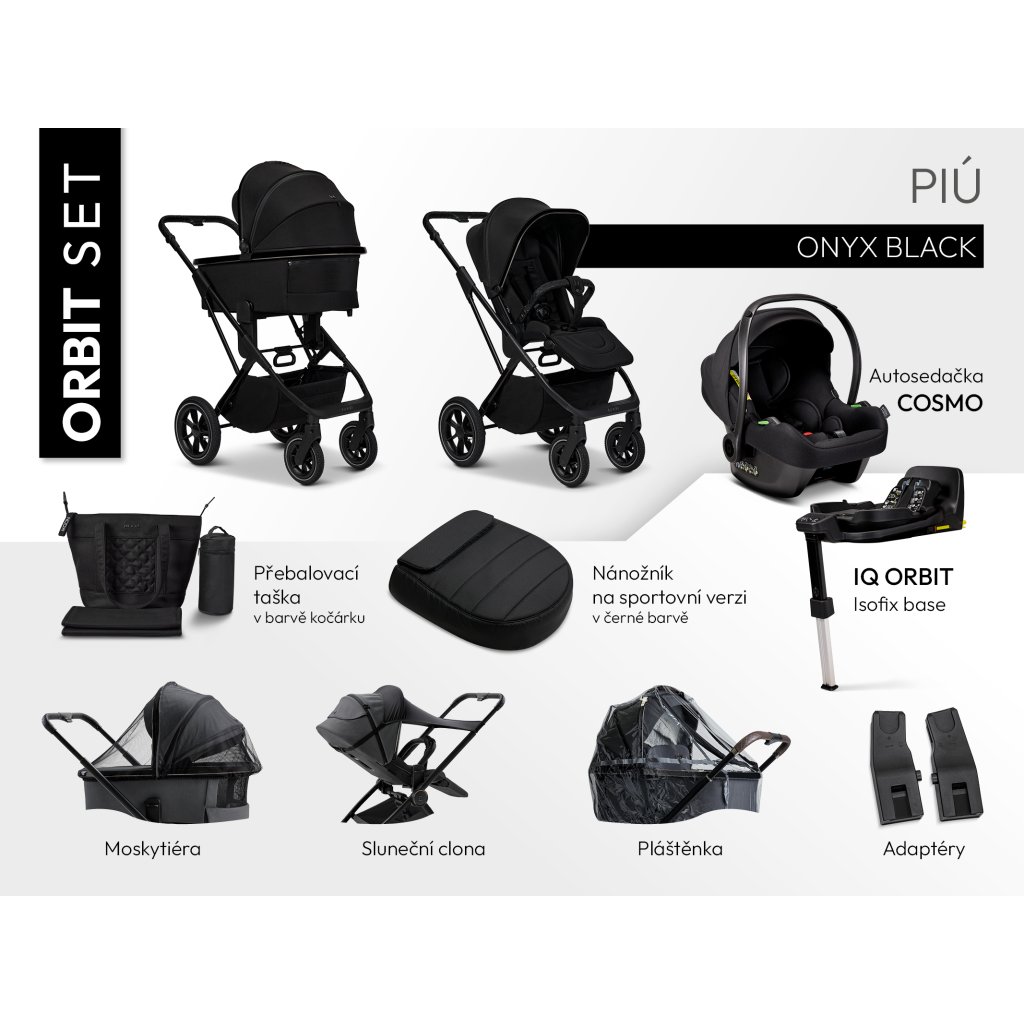 Vhodný od narodenia do 3 rokov, komfortná a ľahká hlboká vaňa s rozopínateľnou strieškou s ventilačnou sieťkou, hlboká vaňa s ventilačným odopínacím okienkom, pamäťové adaptéry pre ľahké vybratie hlbokej vane, priestranný športový sedák s rozopínateľnou strieškou a krytou ventilačnou sieťou sedáku s odvetrávaním, polohovateľná opierka chrbta a nôh až do úplného ľahu, pamäťové adaptéry pri športovom sedáku, opierka nôh pri športovom sedáku nemá hranu, odnímateľné madlo pred dieťa s koženkovým poťahom, výškovo nastaviteľná kĺbová rukoväť, strieška hlboké vane sedák nastaviteľný po aj proti smeru jazdy, polstrované bezpečnostné päťbodové pásy, predné nafukovacie otočné kolesá s možnosťou aretácie, nafukovacie zadné kolesá, priestranný úložný košík.