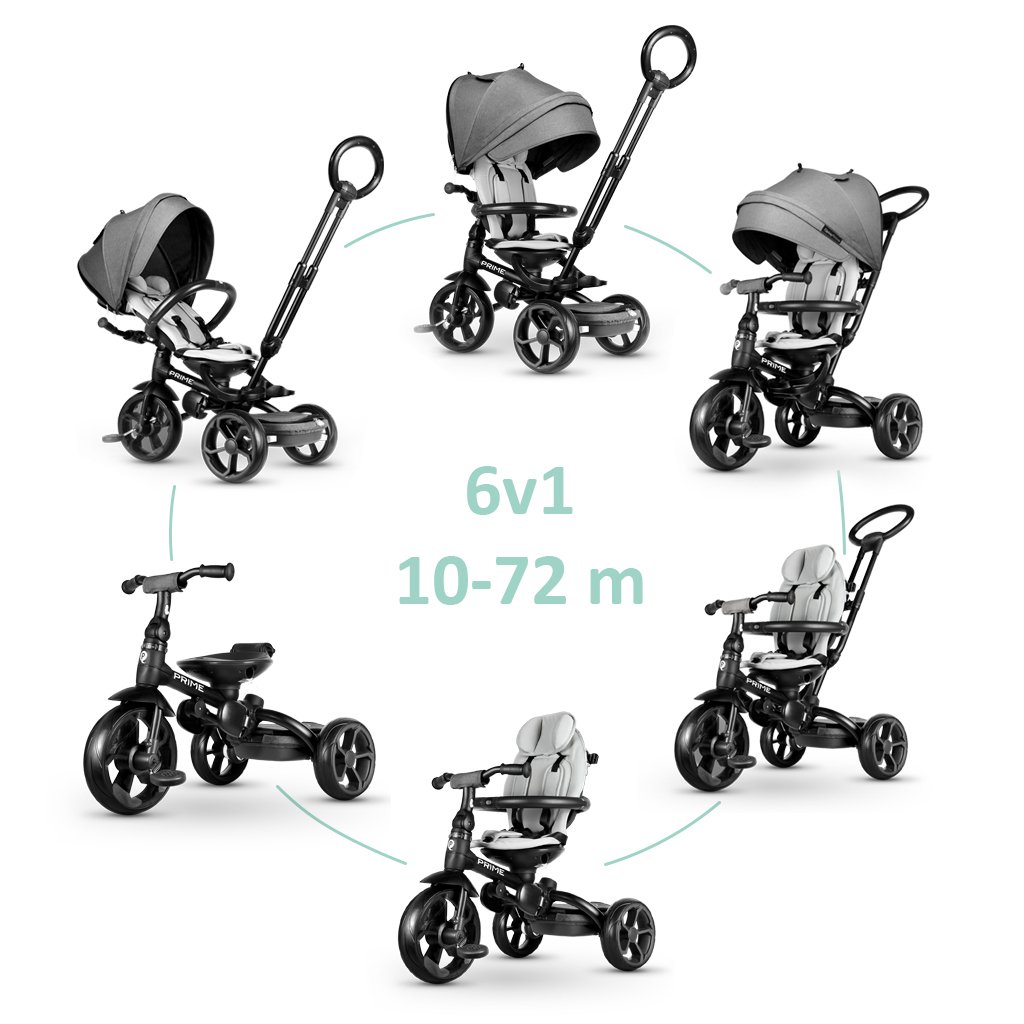 QPLAY Trojkolka Prime Grey, 6v1, vek 10-72 mesiacov