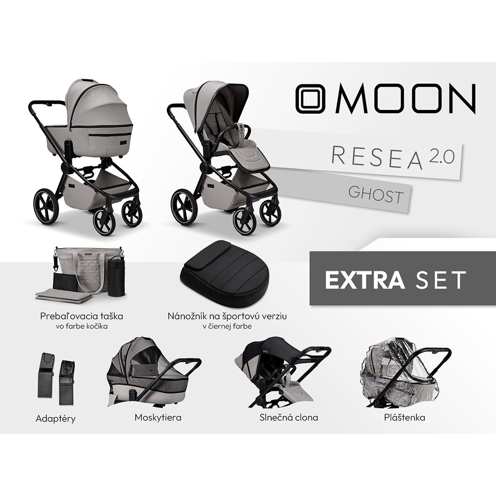 Pre rodičov, ktorí chcú mať všetko potrebné pohromade, je k dispozícii EXTRA SET, ktorý okrem samotného kočíka obsahuje aj: