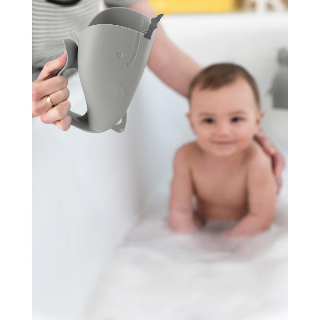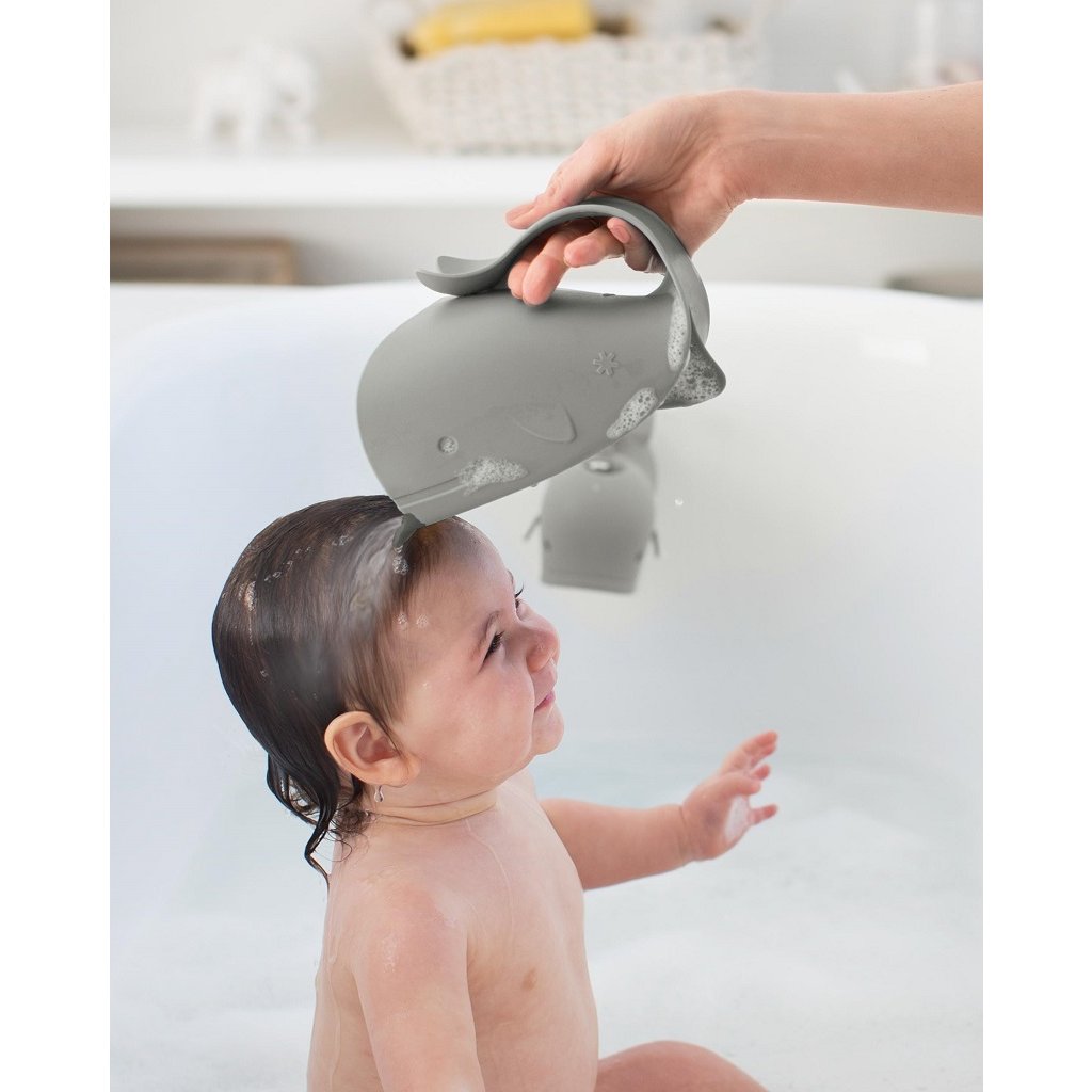 Pohár Moby prináša inováciu pri oplachovaní. Vďaka vnútorným priehradkám tok vody je ustálený, čím sa zabezpečí rýchle oplachovanie. Mäkká guma prirodzene kopíruje tvar čela, čím sa zabráni vniknutiu vody do očí. Ľahká rukoväť umožňuje držať pohár v jednej ruke zatiaľ čo v druhej držíte bábätko.