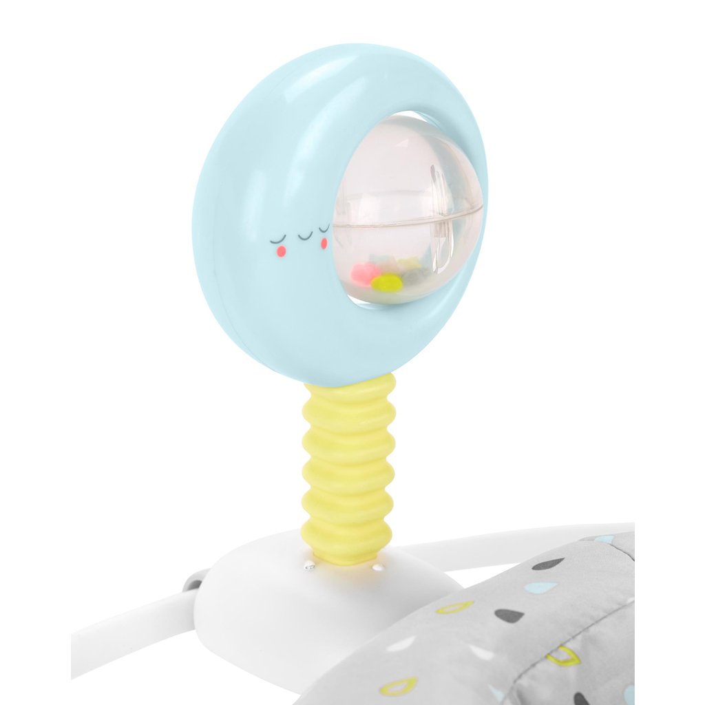 - pohyblivé hračky so systémom clip-on: dúha s pohybujúcou sa hviezdou, hrkálka v tvare mesiaca, tlieskajúce vtáčiky, skákajúce jahniatko;
