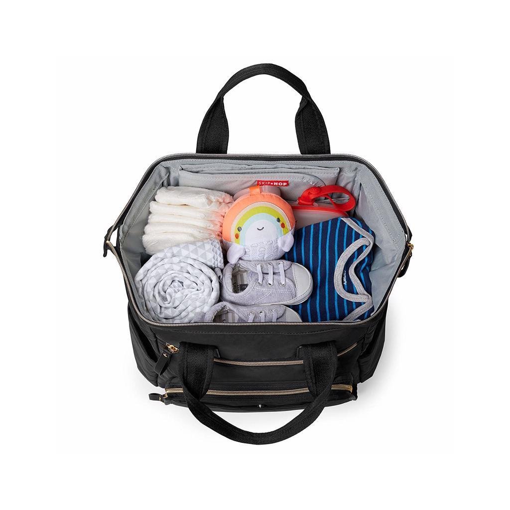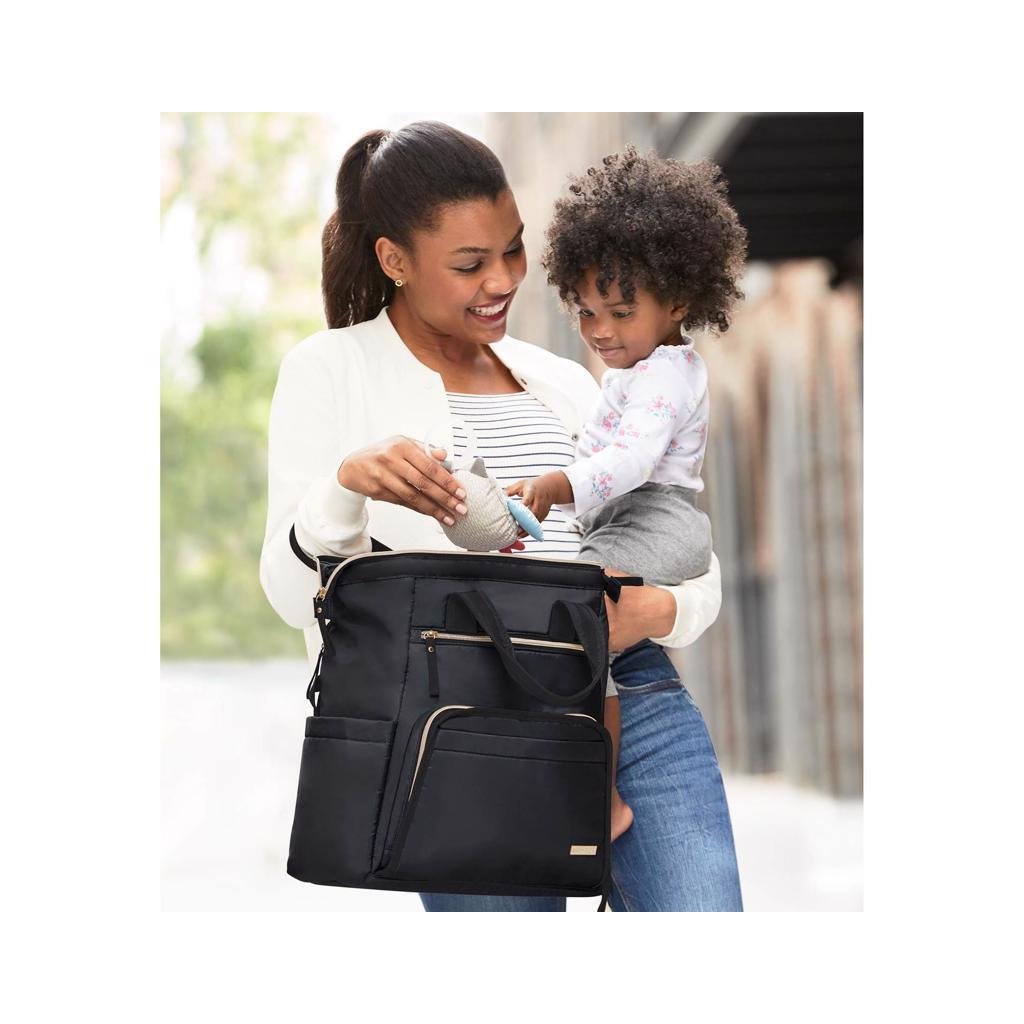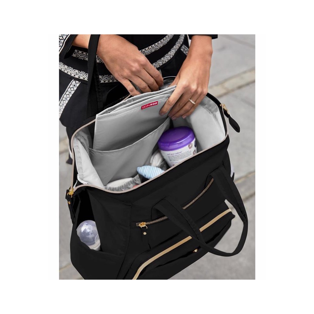 Taška ponúka veľkú hlavnú priehradku so zabezpečením na zips a množstvo vreciek pre veci ako je telefón, fľaša na vodu a kľúče. Vďaka nastaviteľným popruhom je možné tašku použiť ako batoh, a to mamičkám umožní mať voľné ruky, čo je na nezaplatenie.