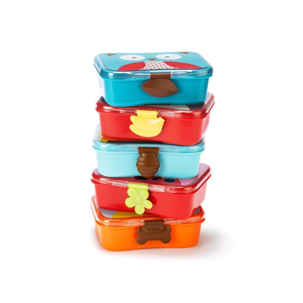 Krásna krabička na desiatu v štýle Skip Hop, v dizajne Zoo kolekcie, skladá sa z 2 dielov: krabička na desiatu s nepriepustným vrchnákom a menšia krabička na piškóty.