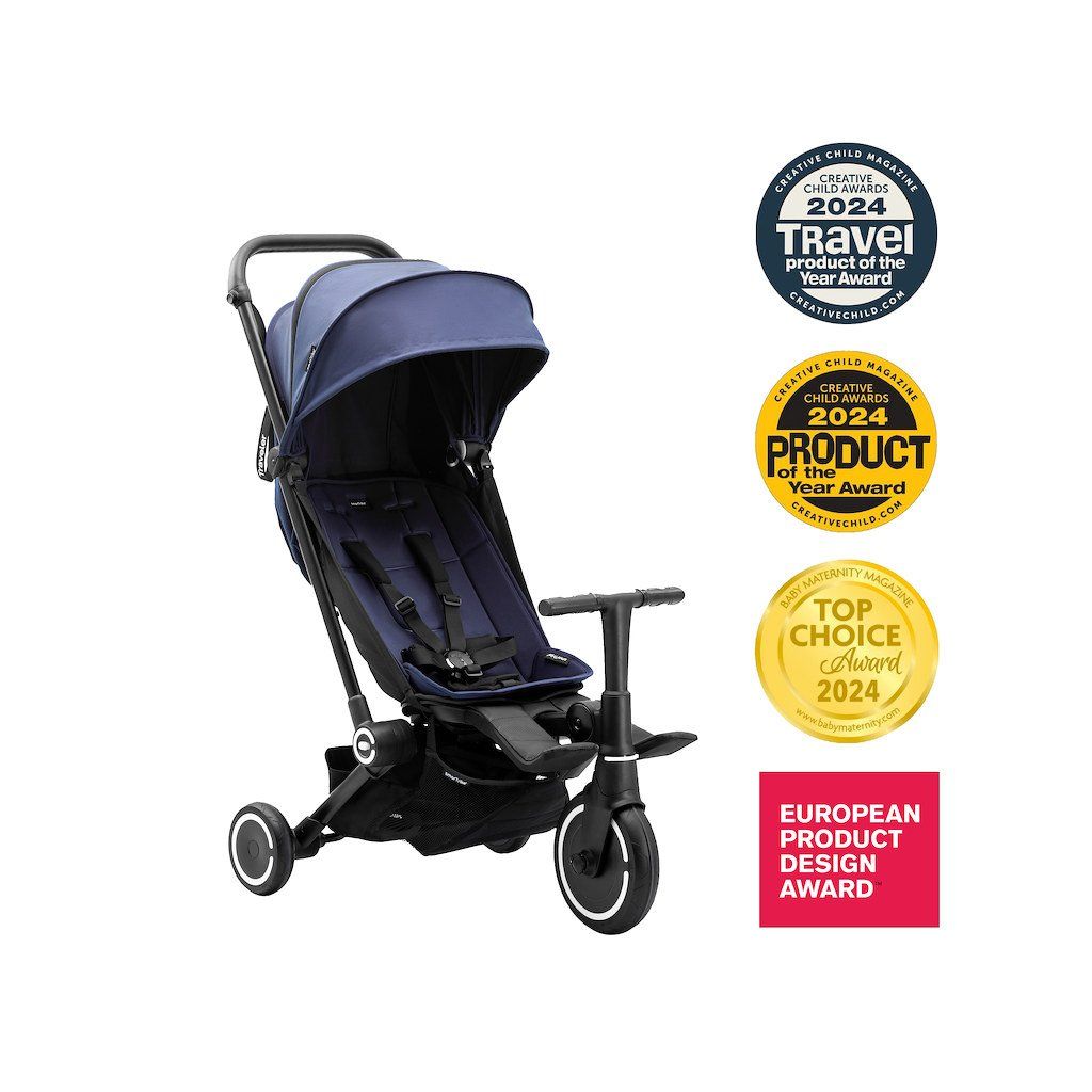 Akonáhle sú deti pripravené riadiť, jediným stlačením tlačidla sa Traveller stane nezávislou detskou trojkolkou navrhnutou pre roky jazdy.