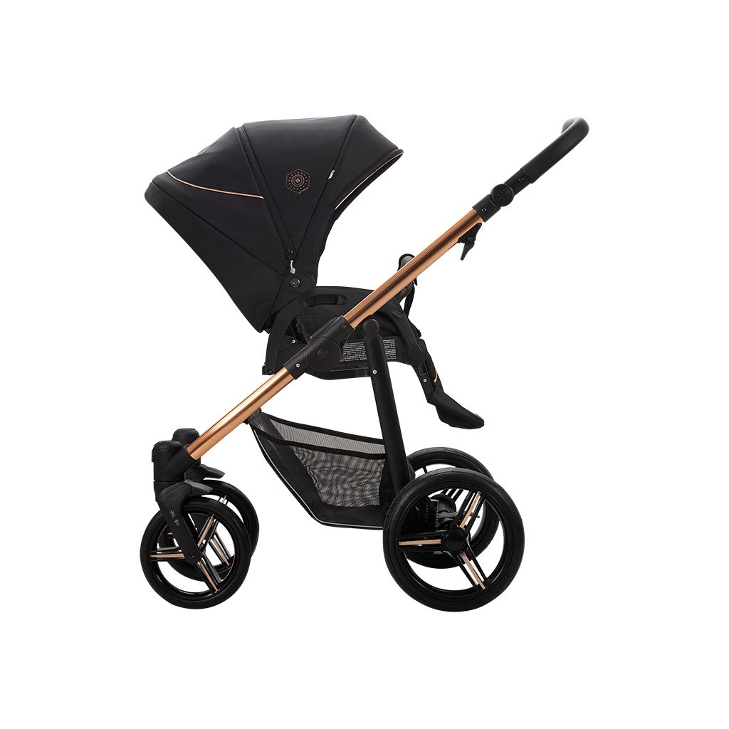 Ľahký športový kočík s otočnou športovou sedačkou. Novodobá ľahká hliniková konštrukcia v zaujímavej medenej farbe s prednými otočnými kolesami zaistí ľahkú manipulácia s kočíkom. Použitím autosedačky je kočík využiteľný už od narodenia. Kočík je možné zložiť aj so športovou sedačkou.