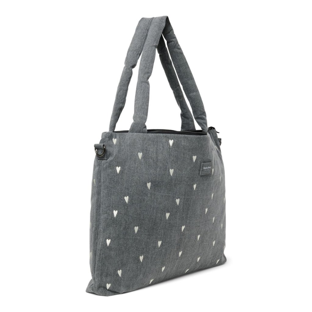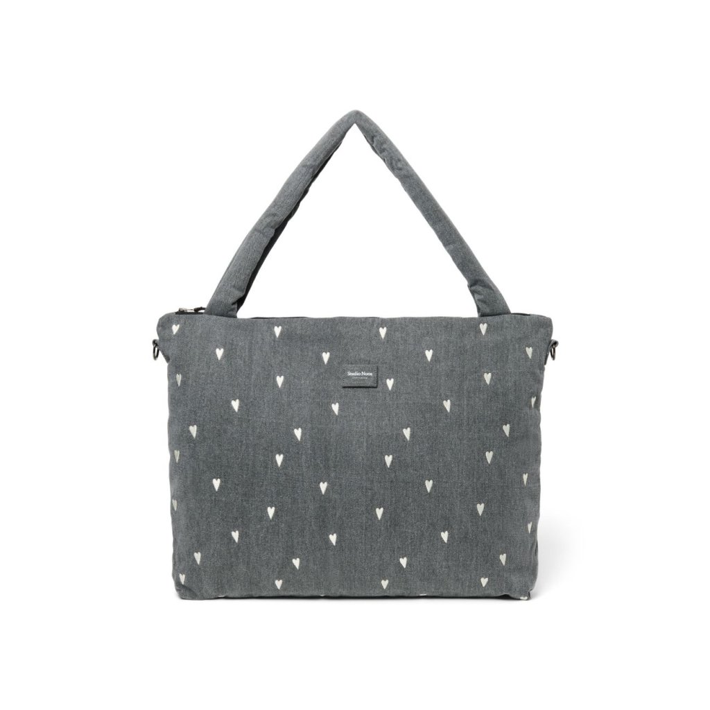 STUDIO NOOS - Denim DIAPER BAG - přebalovací taška | Grey Hearts
