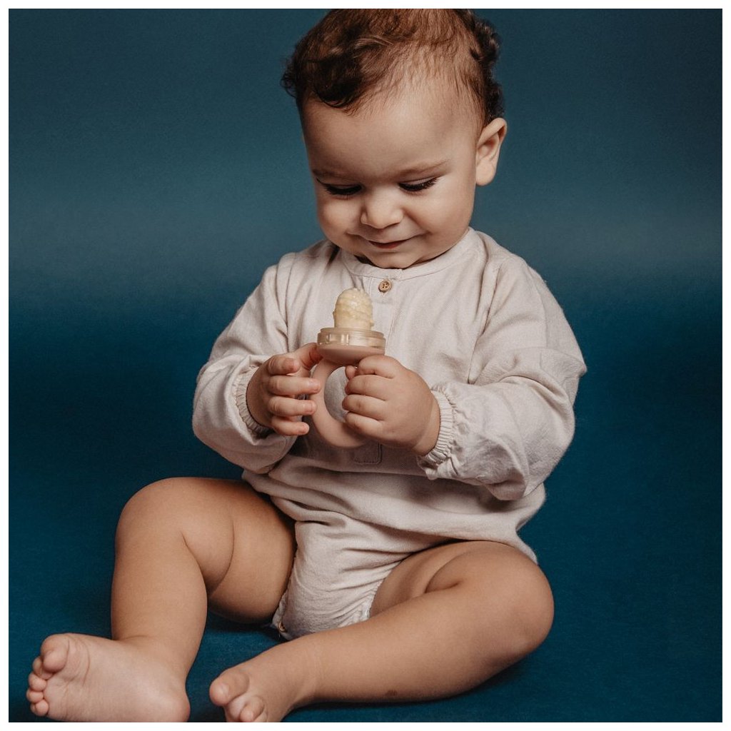 Do antidusivého kŕmidla môžete vložiť kúsky ovocia, zeleniny alebo aj príkrmu. Kŕmidlo je možné schladiť v chladničke či mrazničke, aby dieťaťu poskytlo prirodzený a osviežujúci zážitok. Zásobník je vyrobený zo silikónu lekárskej kvality a ľahko sa umýva v umývačke riadu.