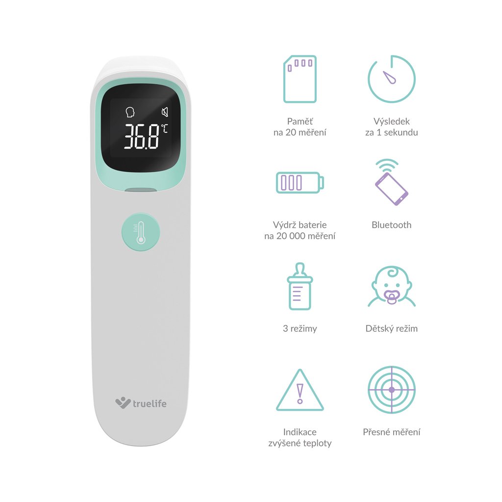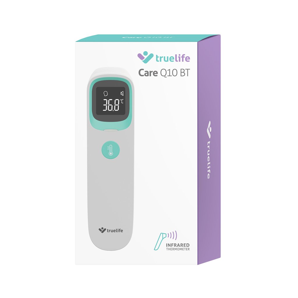 Zdĺhavému držaniu teplomera v podpazuší odzvonilo. Uľahčite si meranie teploty pri chrípke alebo prechladnutí s bezkontaktným teplomerom TrueLife Care Q10 BT. Teplotu dokáže zmerať počas sekundy s presnosťou na 0,1 °C. TrueLife Care Q10 BT ponúka tri režimy merania, vďaka ktorým dokážete bezkontaktne zmerať presnú teplotu osôb z ucha alebo čela, aj predmetov alebo tekutín Namerané hodnoty sa zobrazujú na LCD displeji a sú sprevádzané farebným indikátorom a zvukovým signálom. Vďaka zabudovanému Bluetooth je možné teplomer spárovať s telefónom a hodnoty merania uchovávať v mobilnej aplikácii. Teplomer sa vďaka jeho malým rozmerom perfektne hodí na cesty, dokáže si zapamätať 20 nameraných hodnôt a jeho batéria vystačí až na 20 000 meraní.