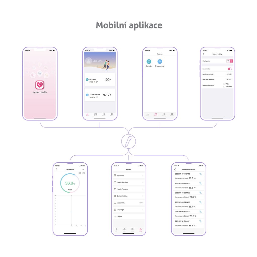 Vďaka zabudovanému Bluetooth je možné teplomer spárovať s telefónom a hodnoty merania uchovávať v mobilnej aplikácii.
