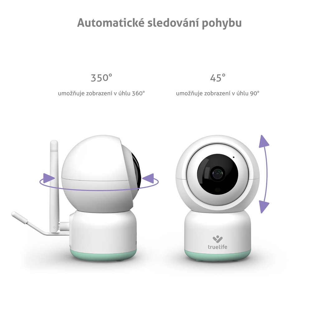 Rotačná pestúnka TrueLife NannyCam R3 Smart dokáže sledovať pohyb a otáčať sa za ním. Navyše jej širokouhlá šošovka vidí do všetkých zákutí a v šere automaticky aktivuje nočné videnie. Dosah pestúnky je vďaka pripojeniu cez internet neobmedzený a vo chvíli, keď máte obrazovku telefónu vypnutú, ona určite nespí. Zaznamená každý pohyb a zvuk a pošle vám oznámenie do vášho telefónu. Záznam navyše môže nahrávať aj v režimu 24/7 na SD kartu.