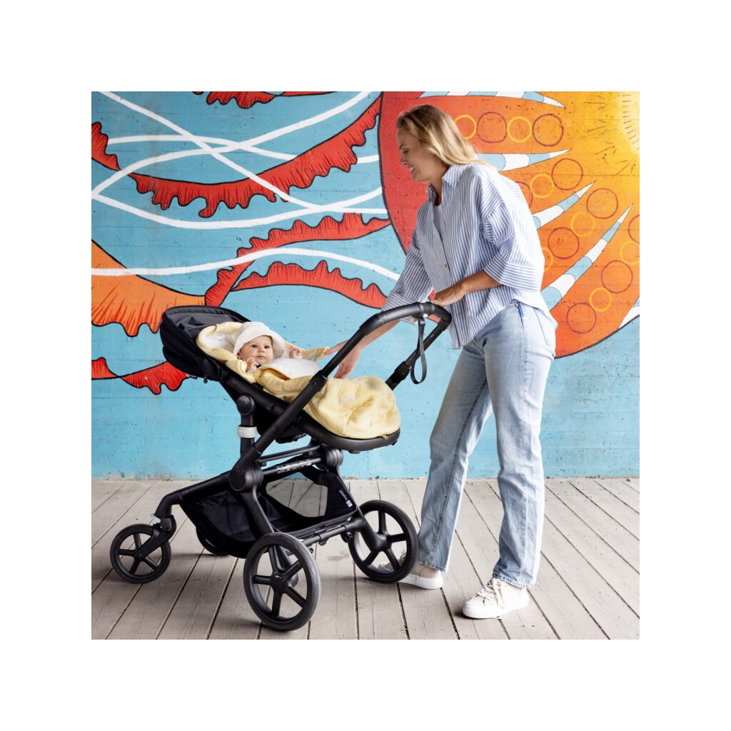 Príjemný jarný fusak do kočíka poskytne bábätku komfortné prostredie, keď ešte nie je veľmi teplo alebo veľká zima. Fusak je vyrobený z vysoko akostnej bavlny s moderným štrukturovaným vzorom. Charakteristikou fusaku Breeze je otváranie, ktoré je moderné a účelové na oboch jeho bočných stranách a fusak je prešitý kľukatým spôsobom pre správnu funkciu výplne. Tá je vyrobená z recyklovaného materiálu a prešitie jej zabraňuje zosadaniu. Zipsy sú obojstranné, umožňujú odvetrávanie v oblasti nožičiek. Zadná strana fusaku je vybavená prestrihmi na prevlečenie bezpečnostných pásov a protišmykovým materiálom, ktorý pomáha fusak držať na kočíku. Konce zipsov sú vybavené ochrannými látkovými krytmi. Vnútorný materiál je zo 100% bavlneného saténu, v tohto ročnej kolekcii s krásnou potlačou hviezd. Každá časť fusaku prešla prísnym testom a spĺňa požiadavky OEKO-TEX štandard 100 trieda 1.