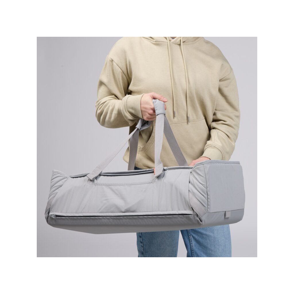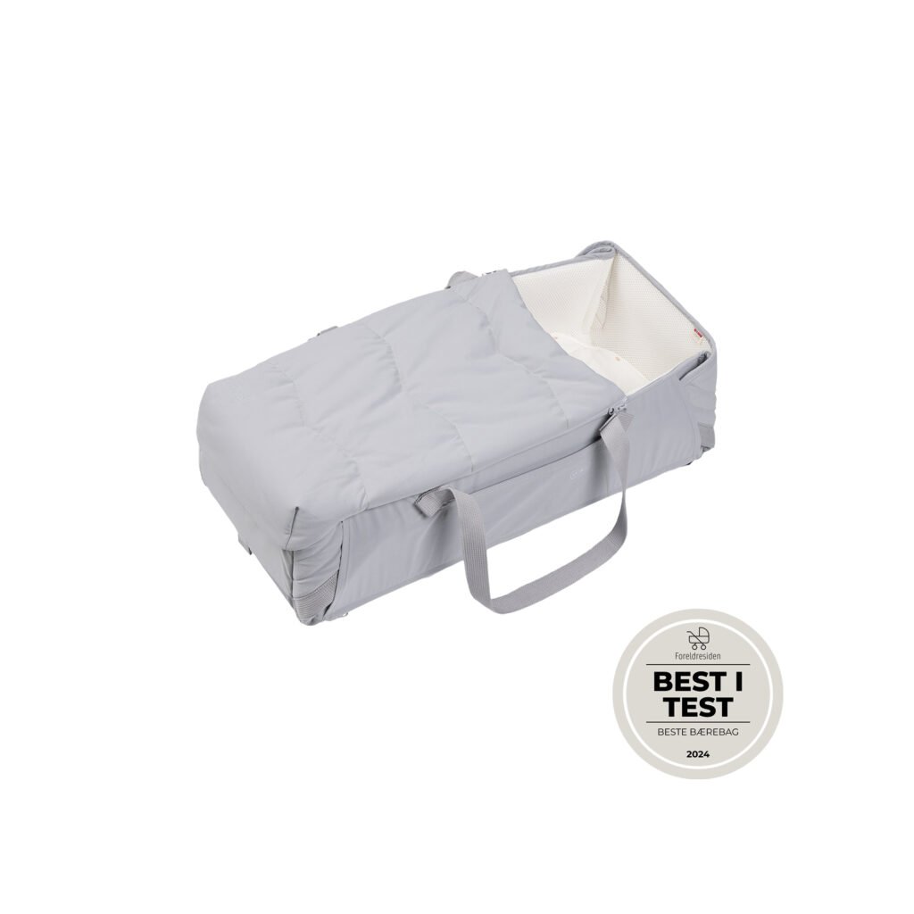 Vnútorná časť je kompletne z 3D sieťoviny, ktorá zaisťuje pohodlné a bezpečné pohodlné miesto pre vaše bábätko. K dispozícii má i ľahko prateľný matrac potiahnuý organickou bavlnou. Spodná časť je vybavená pevným odnímateľným dielom, čím je dosiahnuá veľká odolnosť produktu. Výplň je z penového materiálu a vonkajšia látka z recyklovaného polyesteru, spodná časť je veľmi jednoducho udržiavateľná, stačí ju len utrieť. V základnej výbave je jednoducho odopínateľný nánožník, ktorý je vetru i vode odolný. Inovatívne funkcie zámku Voksi Soft ReleaseTM uvoľňujú uši na prenášanie len vtedy, ak sú kompletne uzamknuté rohy produktu. Vďaka tejto funkcii je nosenie ešte bezpečnejšie. Pokiaľ rohy na produkte odomknete, nejde lôžko prenášať, ale rozloží sa do plochého tvaru. Uzamknutie a odomknutie rohov Carry Me je tiché, a tak neruší bábätko pri spánku. Každú stranu možno uvoľniť separátne. Pokladajte Carry vždy na vodorovnú plochu, aby sa nám bábätko neskotúľalo von. Nikdy bábätko nenechávejte bez dozoru. Nepoužívejte v posteli. Schválené podľa EN 1466:2023. Vždy si prečítajte a dodržujte pokyny pre správne použitie.