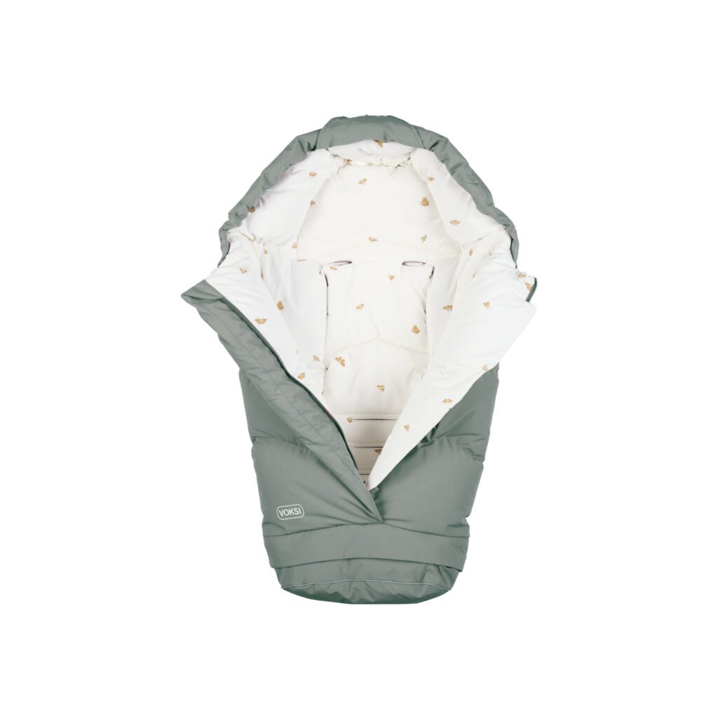 Dodáva sa s mäkkou vložkou pre hlavičku, ktorá poskytuje extra pohodlie pre dieťa a chráni vnútorný poťah pod hlavičkou. Oblasť okolo oblasti hlavy je možné upraviť podľa poveternostných podmienok a preferencií dieťaťa. Stredový predný otvor na zips umožňuje ľahký prístup k dieťaťu a širokú klopu je možné použiť na extra tesné zabalenie vášho dieťaťa. Nesťahujte striktne oblasť hlavy do maxima, dieťa musí dýchať. Nechajte deti vždy spať pod dohľadom.