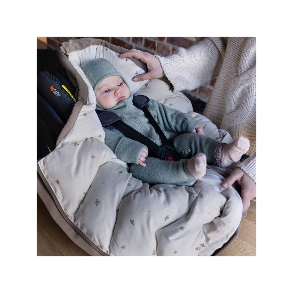 Dá sa používať od narodenia až do 1,5 roka. Je ideálny na dlhé aj krátke cesty a je navrhnutý tak, aby sa vaše dieťa v aute cítilo bezpečne, v teple a pohodlí. Možno ho použiť aj ako spací vak a má predný zips pre jednoduchý prístup k dieťaťu.