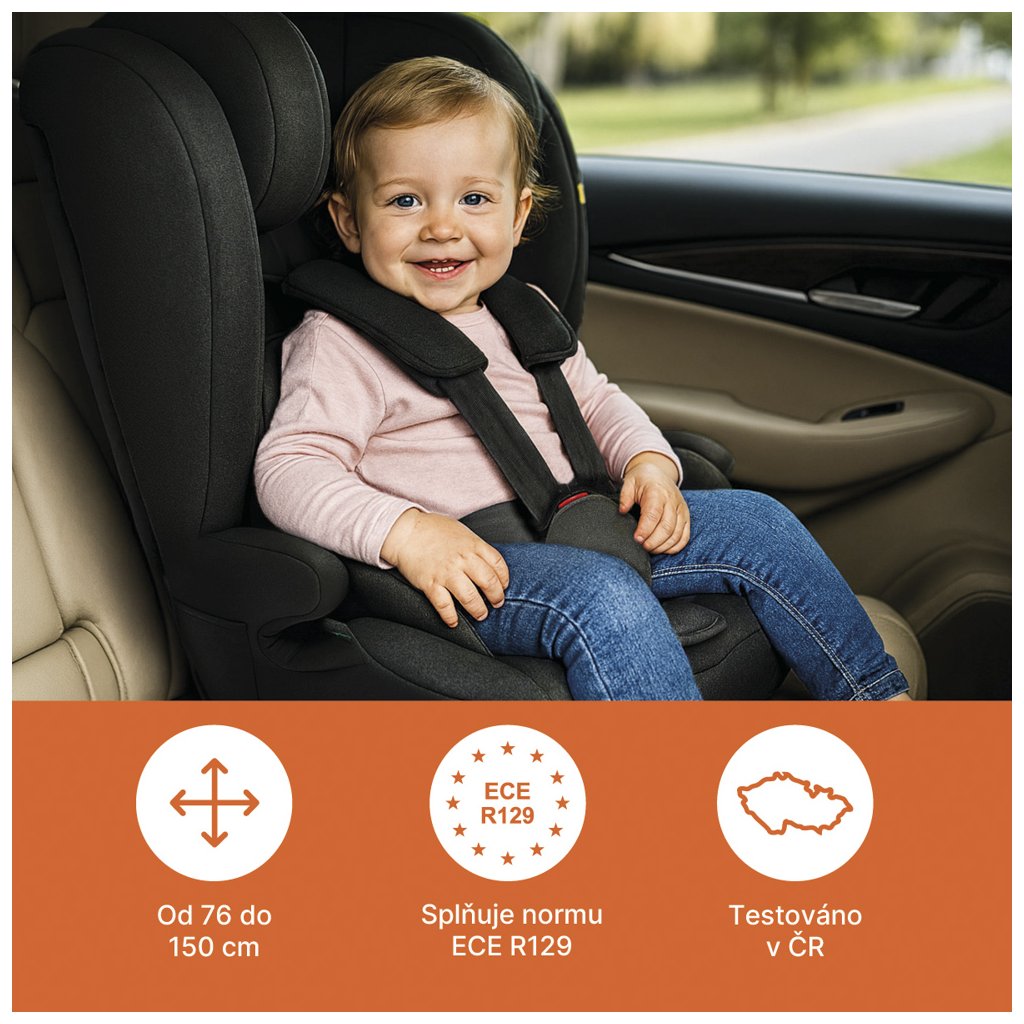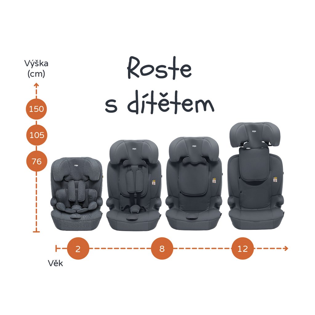Zopa Alfa R129 je praktická a spoľahlivá autosedačka, ktorá porastie s vaším dieťaťom od batolivého veku až do 12 rokov. Je určená pre deti s výškou od 76 do 150 cm a spĺňa prísnu bezpečnostnú normu ECE R129 (i-Size). Vďaka inštalácii pomocou trojbodového bezpečnostného pásu vozidla je autosedačka vhodná do každého auta, bez ohľadu na to, či je vybavené systémom Isofix, čo z nej robí univerzálne riešenie pre celú rodinu.