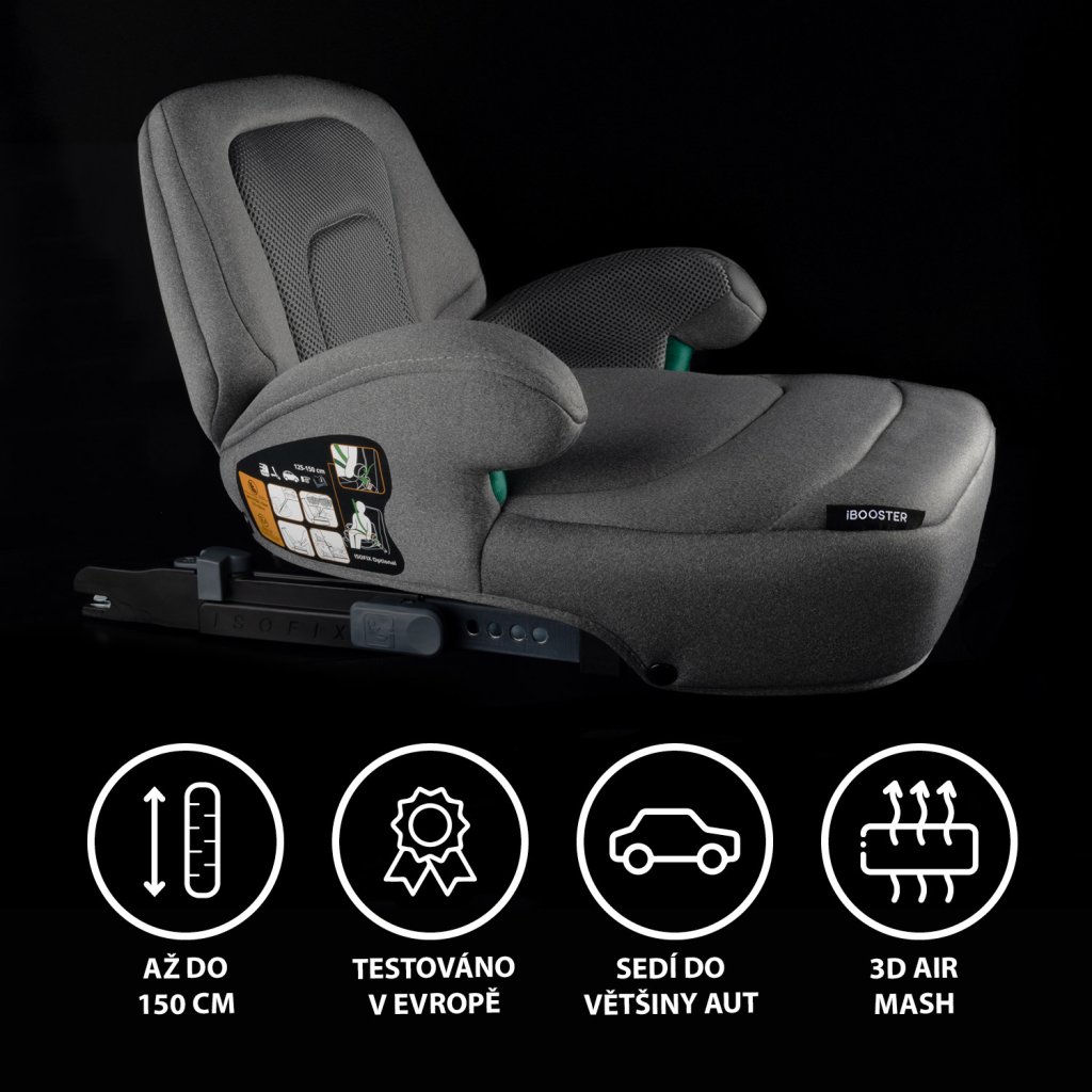 Podsedák iBooster bol testovaný v Európe a spĺňa najnovšiu bezpečnostnú normu i- Size . Do auta ho možno inštalovať pomocou isofixu a bezpečnostného pásu vozidla alebo iba pomocou bezpečnostných pásov vozidla. Indikátory rodičom ukážu, kadiaľ je potrebné pás viesť, aby perfektne chránil dieťa.