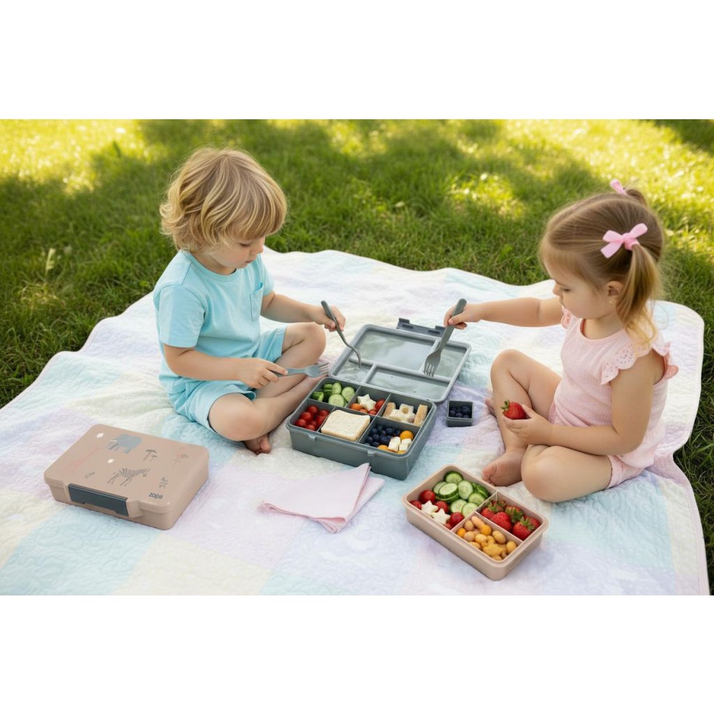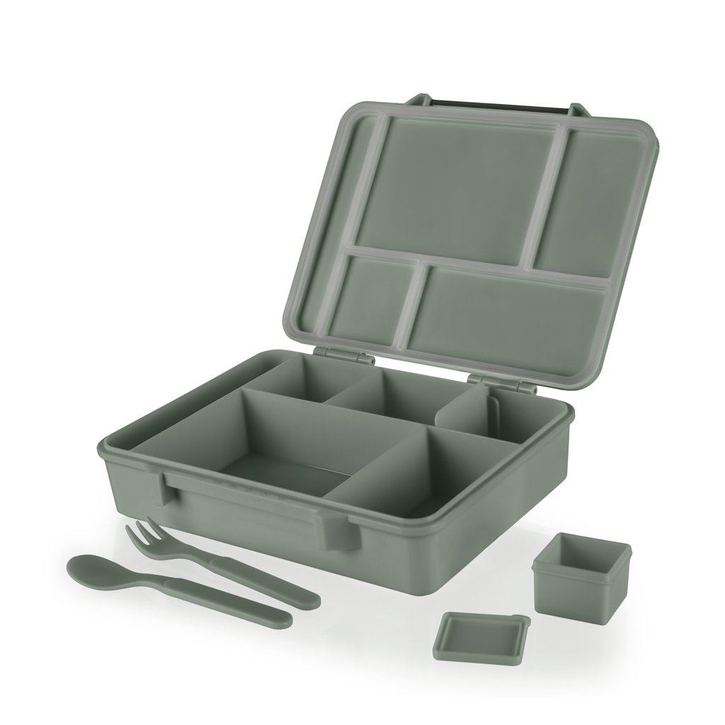 Vďaka viacerým priestranným priehradkám rôznych veľkostí (500 ml, 330 ml, 220 ml, 150 ml a 130 ml) môžete pripraviť pestrý a vyvážený obed so sebou. Malá nádobka na omáčku a integrovaná vidlička s lyžičkou sú samozrejmosťou.