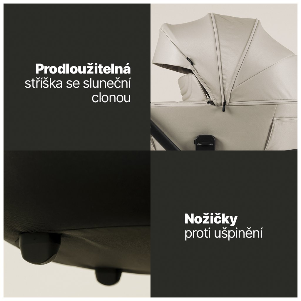 Pohodlie zabezpečuje mäkký matrac a predĺžiteľná strieška s vetruodolnou clonou. Vanička je ideálna do každého počasia – vetracie okienka v strieške, v prednej aj zadnej časti a dokonca aj na spodnej strane zabezpečujú výbornú cirkuláciu vzduchu počas horúcich dní. V chladnom počasí dieťa ochráni hlboký nánožník s clonou proti vetru.