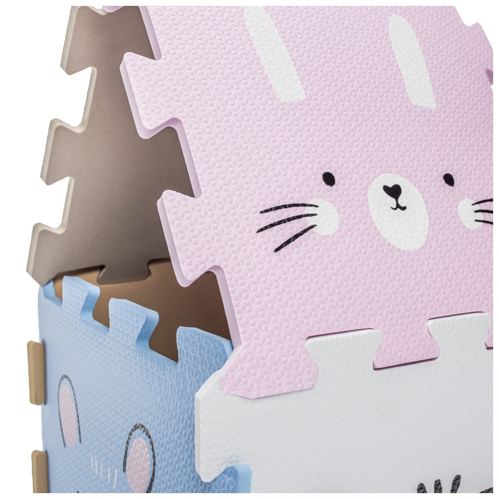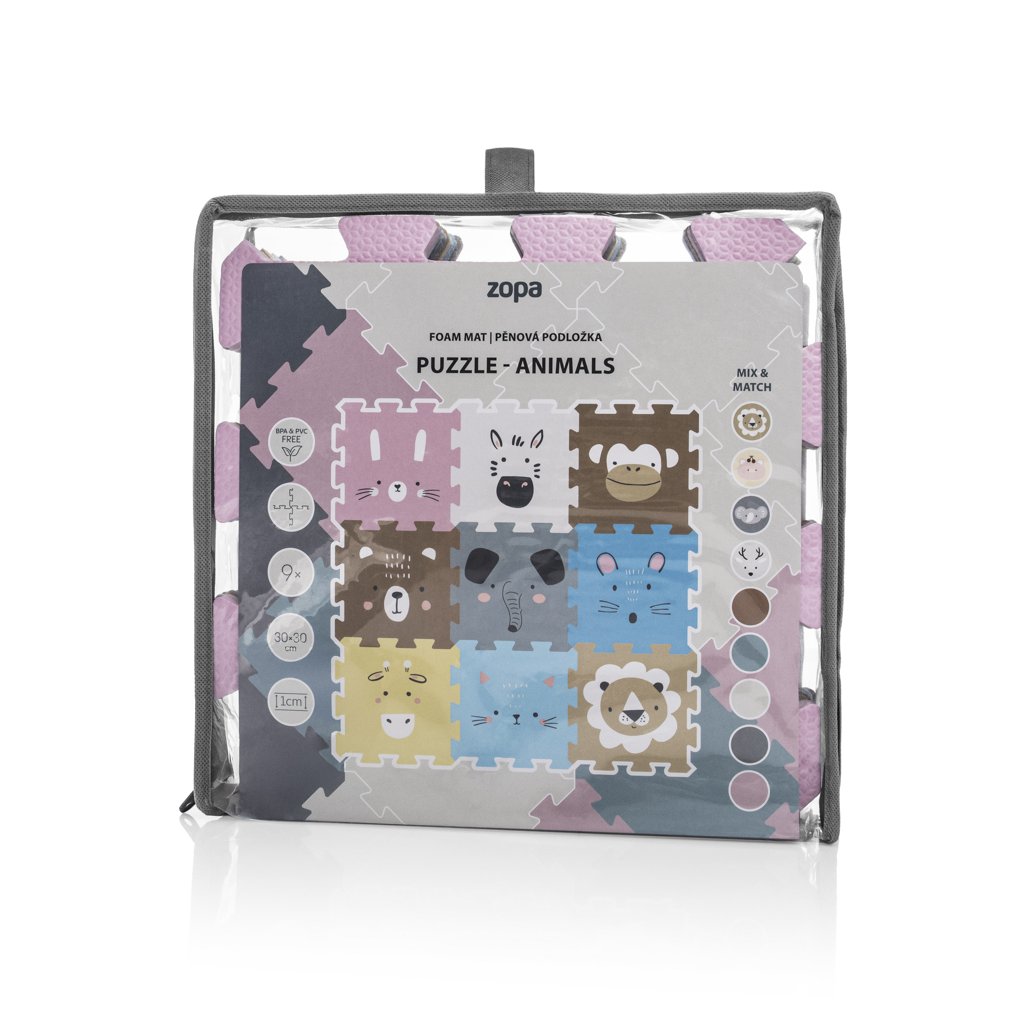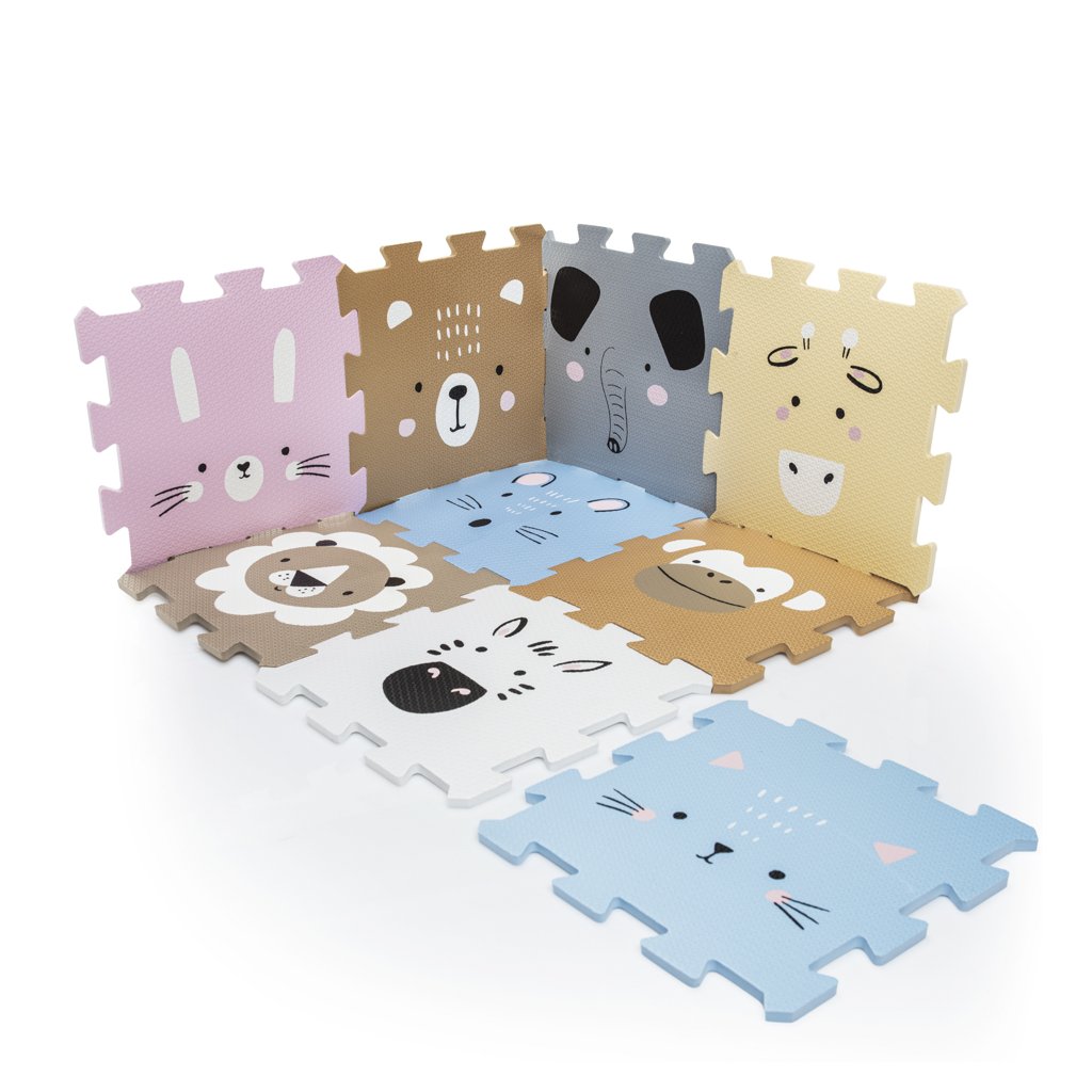 Penové puzzle je vyrobené z kvalitnej EVA peny. Slúži nielen ako podložka, ktorá zabezpečí pohodlie vďaka izolácii od chladu, ale aj ako praktická pomôcka pre prvé mesiace bábätka, keď poskytuje mäkkú oporu pri pásení koníčka alebo pri prvom lození.