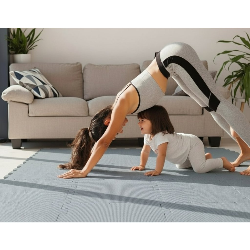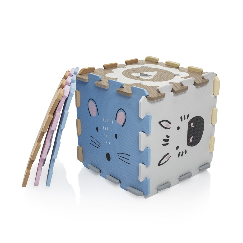 Jednotlivé dlaždice 30 × 30 cm (9 ks) do seba perfektne zapadajú. Podložka je vhodná pre deti od narodenia, vyrobená z nezávadného a príjemného materiálu.