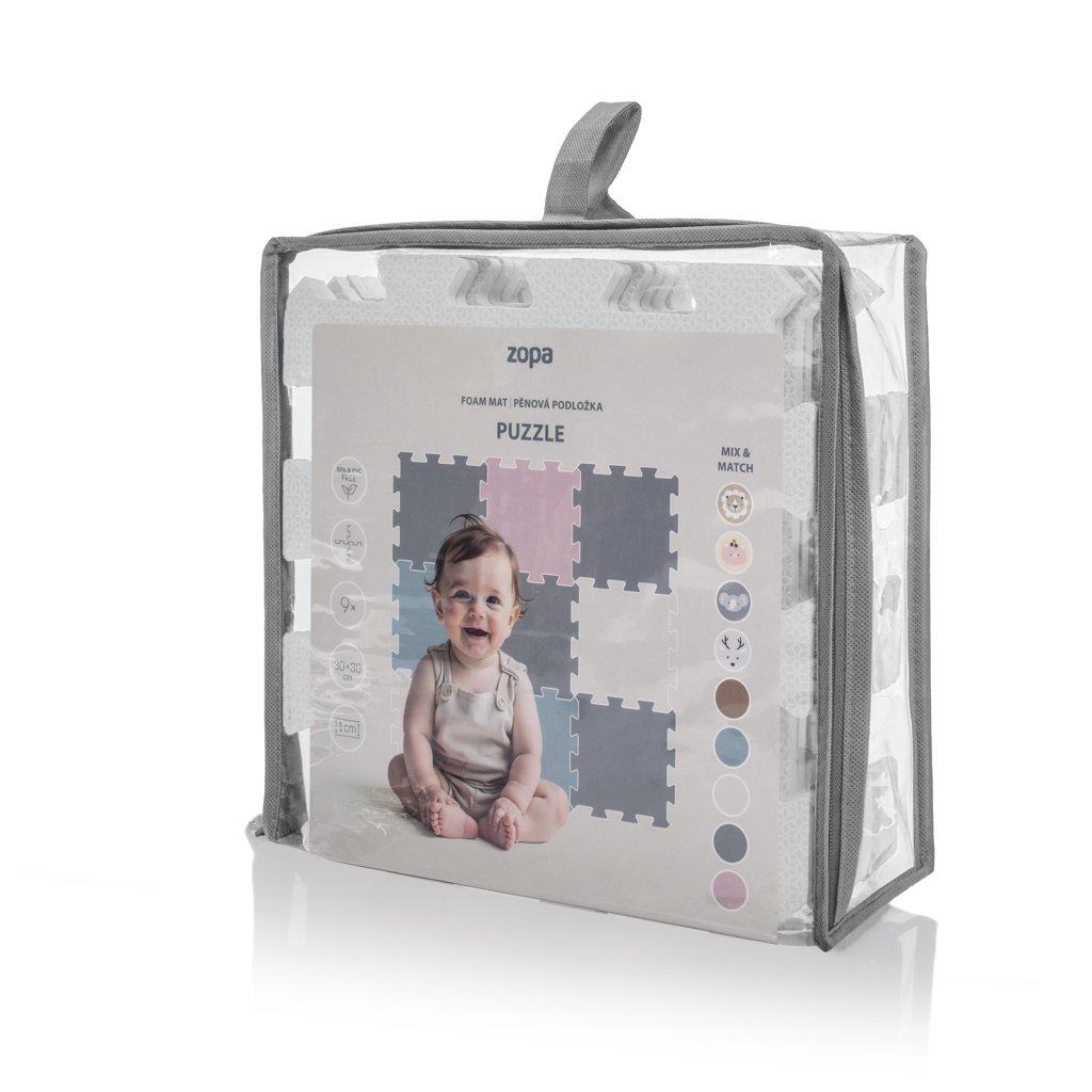 Penové puzzle je vyrobené z kvalitnej EVA peny. Slúži nielen ako podložka, ktorá zabezpečí pohodlie vďaka izolácii od chladu, ale aj ako praktická pomôcka pre prvé mesiace bábätka, keď poskytuje mäkkú oporu pri pásení koníčka alebo pri prvom lození.