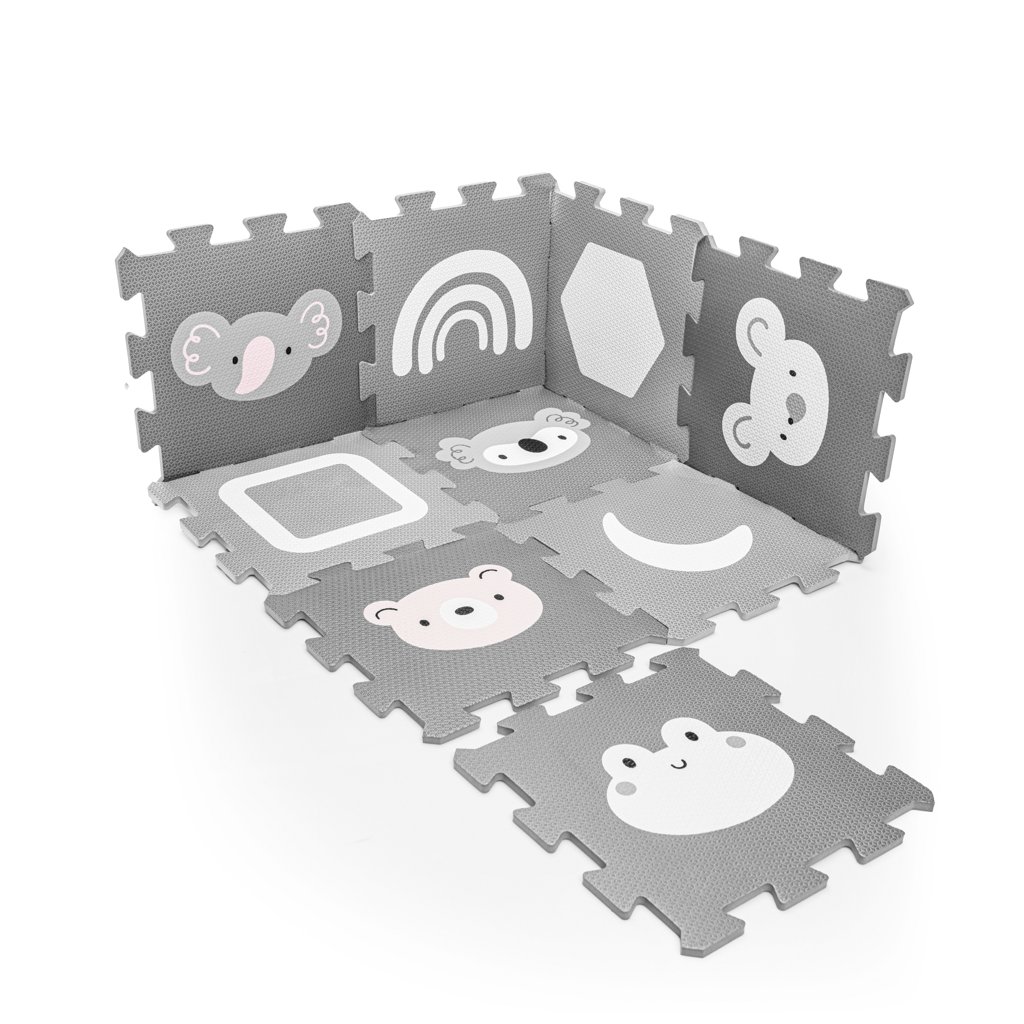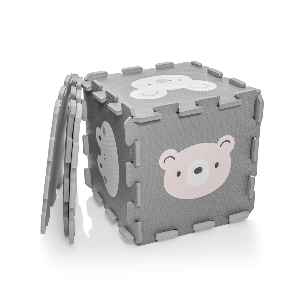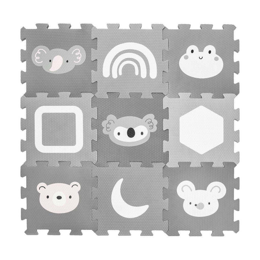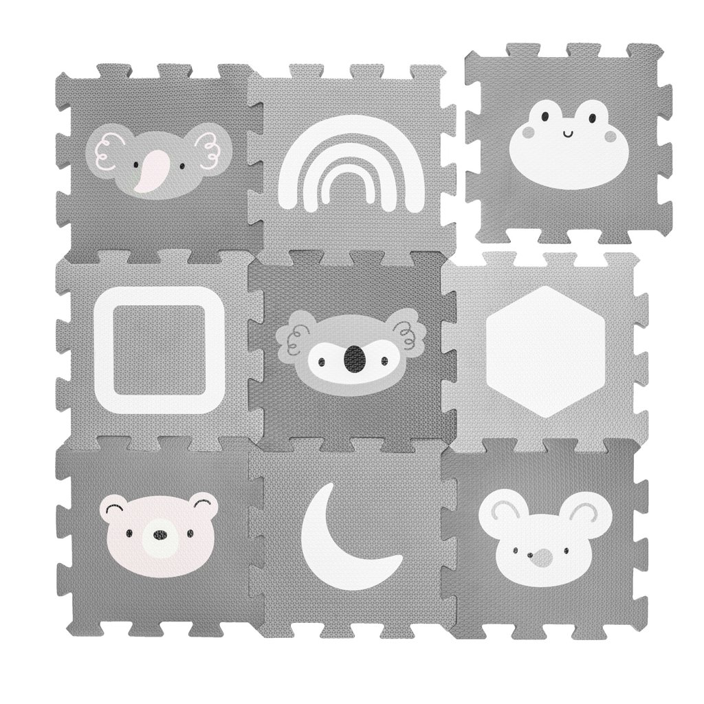 Jednotlivé dlaždice 30 × 30 cm (9 ks) do seba perfektne zapadajú. Podložka je vhodná pre deti od narodenia, vyrobená z nezávadného a príjemného materiálu.
